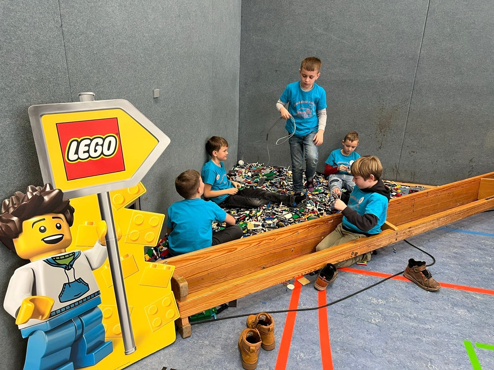 In diesem Schulhalbjahr bauen Kinder der 3. Klasse in Teams von 2-3 Kindern ein Lego-Modell, dass aus einer drehbaren Bühne, einem Skater-Park sowie weiteren kreativen Einfällen der Teams besteht. Zudem können sie sich in der Programmierung von Fahrzeugen mit Motoren und Lichtschranken erproben.